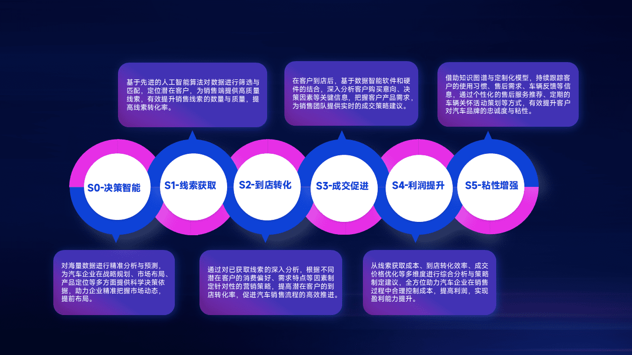 通过拓宽潜在客户来源、、优化线索分配并提高到店转化率,,,,以增强销售效率。。同时,,,利用线索数据不断优化分析模型,,,有效提升转化率,,,,扩大营销影响力。。。。